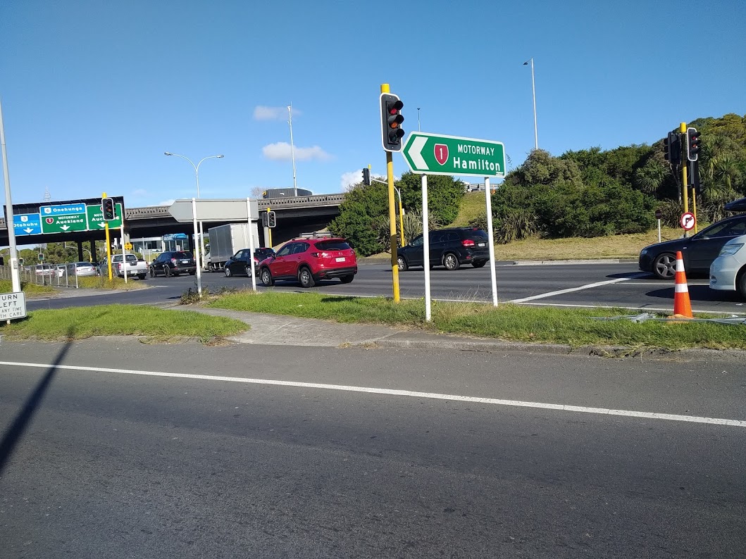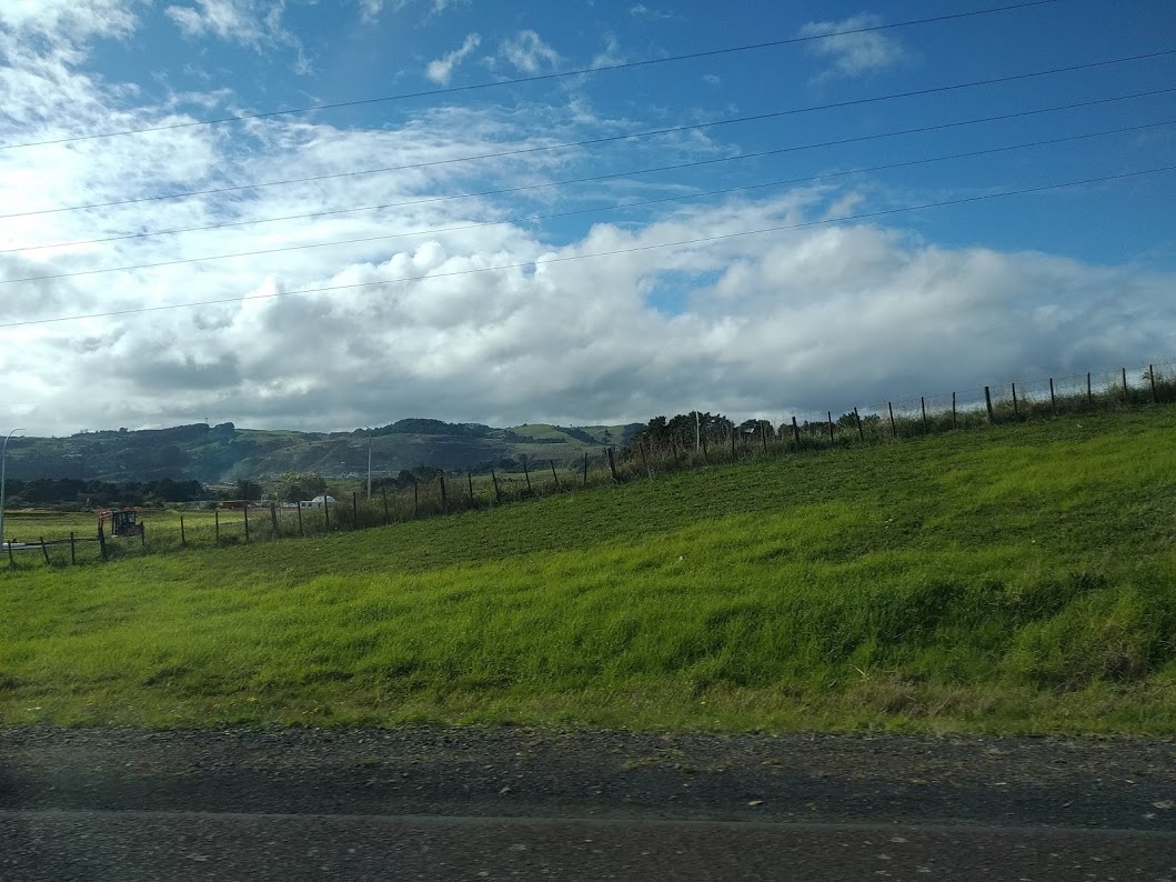 Alig fértem be a hátamon lévő hátizsákkal. Az autópálya szélén rakott ki minket, úgy, hogy a soksávos úton át kellett sétálnunk, a jó irány fele haladás reményében. Izgi volt. Megjegyezném, hogy az első tanács, amit kaptunk, az volt, hogy autópályán NE. Otthon is tilos, Új-Zélandon is tilos. Mindenesetre nem lehetetlen, ha van egy jó leállósáv a közelben és szorult helyzetben vagy.